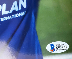 This is a 12x16 Photo, approximately 16 3/4 x 12.5, that has been hand signed by Mason Mount. This item has been certified authentic by Beckett Authentication (BAS) and comes with their tamper-proof sticker and matching certificate of authenticity.