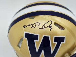 Michael Penix Jr. Autographed Washington Huskies Gold Speed Mini Helmet Beckett BAS Witness