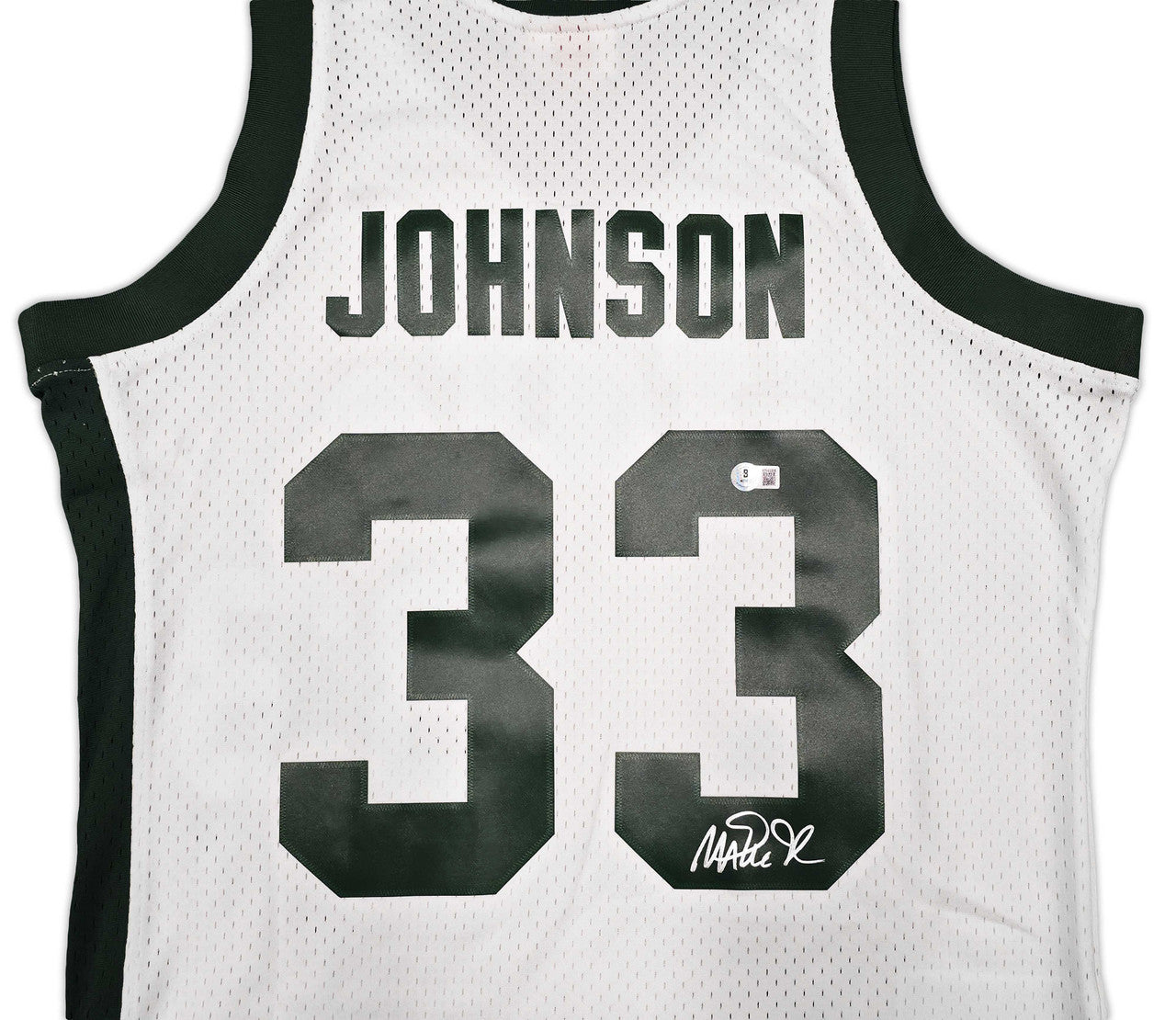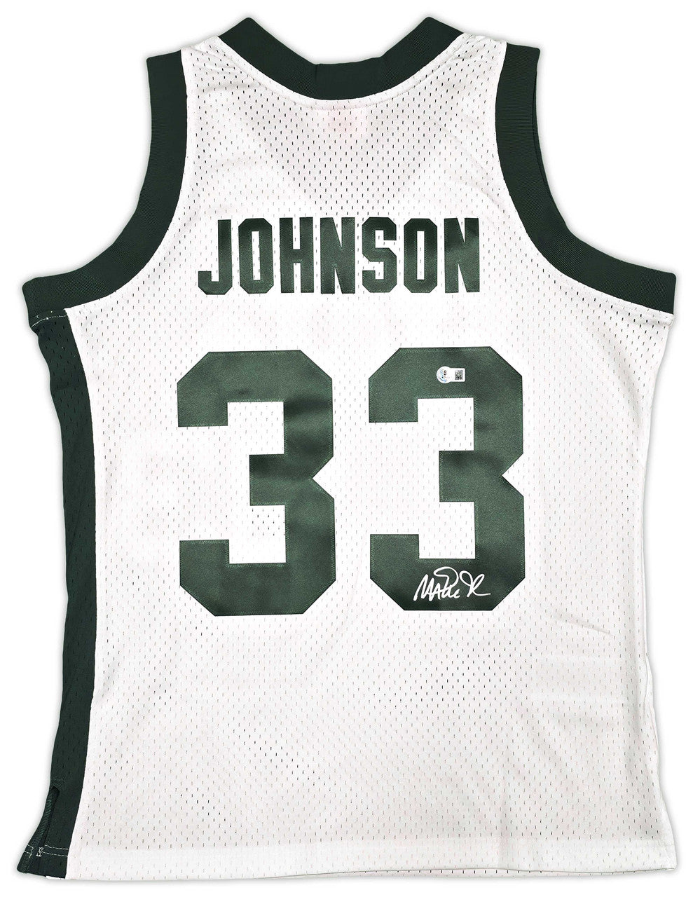 Add a rare collegiate collectible to your display with this Magic Johnson Autographed White Authentic Mitchell & Ness 1978–79 College Vault Michigan State Spartans Jersey (Size XL), authenticated by Beckett BAS Witness.