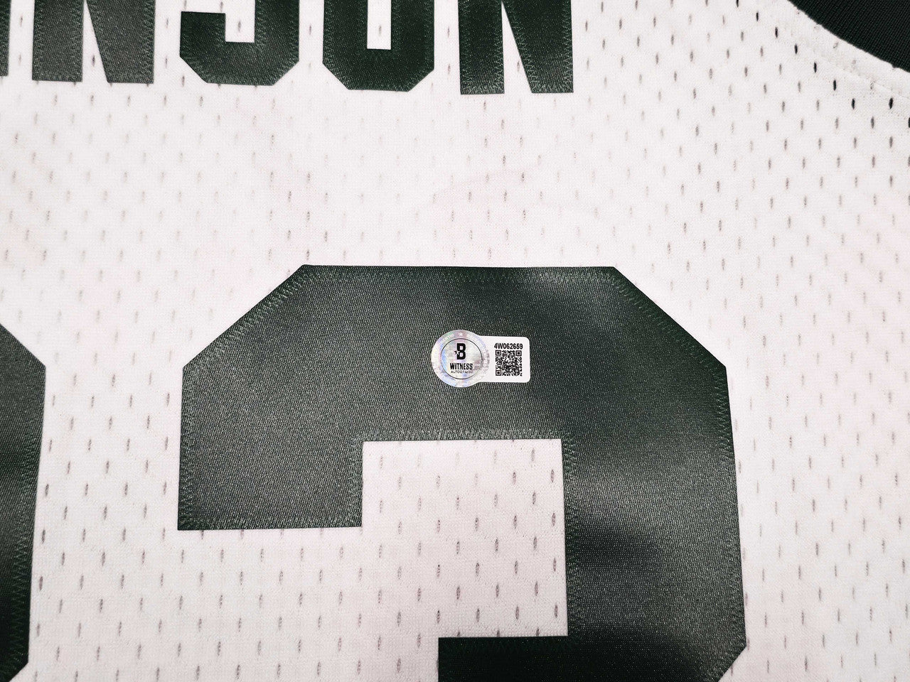 This premium Mitchell & Ness College Vault Jersey replicates Magic’s 1978–79 Michigan State style, featuring stitched lettering, retro green trim, and high-quality materials true to the original college uniform. Magic’s bold autograph across the back number makes this a centerpiece-worthy addition to any Spartans or NBA collection.
