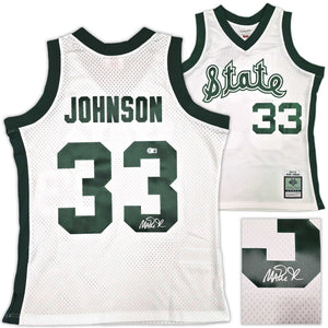 Michigan State Spartans Magic Johnson Autographed White Authentic Mitchell & Ness 1978-79 College Vault Jersey Size XL Beckett BAS Witness