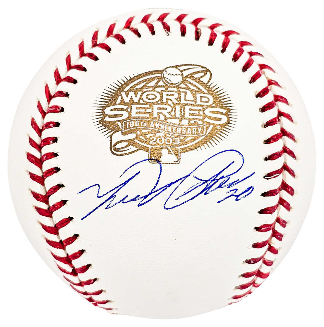 This Official 2003 World Series logo baseball has been hand signed by Miguel Cabrera, one of the greatest hitters of his generation and a future Baseball Hall of Famer. Cabrera made his World Series debut as a 20-year-old rookie in 2003, playing a key role on the championship stage and beginning a legendary MLB career.