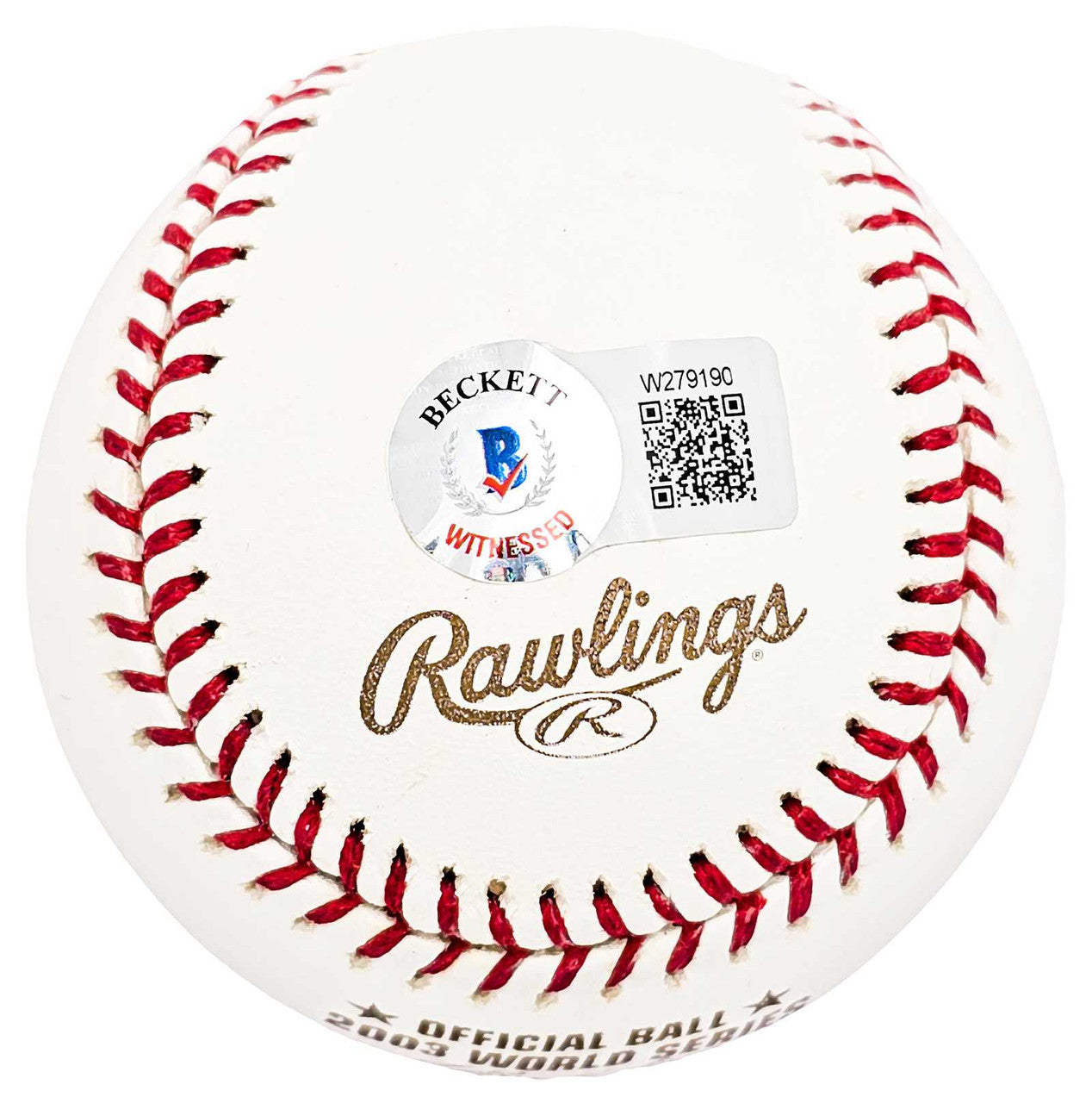 Celebrate a defining moment in baseball history with this Miguel Cabrera Autographed Official 2003 World Series Logo Baseball, professionally authenticated by Beckett Authentication Services (BAS) Witness.