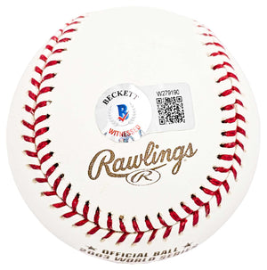 The autograph was obtained in the presence of a Beckett Authentication Services (BAS) Witness, ensuring the signature was observed live at the time of signing. The baseball includes a tamper-proof Beckett hologram for lifetime online verification.