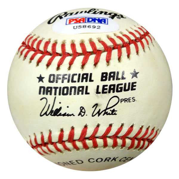 This is an official National League Baseball that has been hand signed by Mike Sandlock. It has been authenticated by PSA/DNA and comes with their sticker and matching certificate of authenticity.