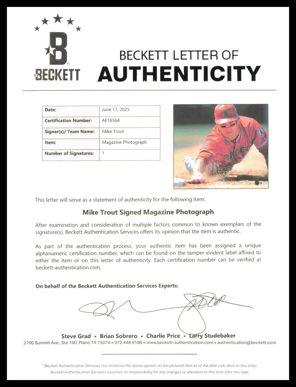 Mike Trout Autographed Framed 11x12 Photo Los Angeles Angels Beckett BAS #AE16564