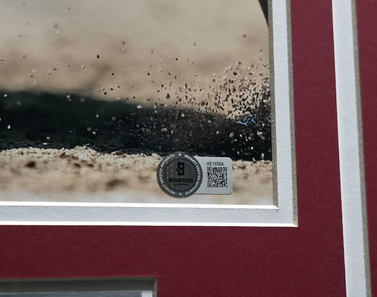 This hand-signed photo is authenticated by Beckett Authentication Services (BAS #AE16564), ensuring 100% authenticity. The professionally framed display makes it ready to showcase in your home, office, or sports room.