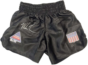 This is a pair of Black Boxing Trunks that has been hand signed by Mike Tyson. This item has been certified authentic by Beckett Authentication (BAS) and comes with their tamper-proof sticker and matching certificate of authenticity.