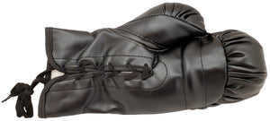 Own a piece of boxing history with this authentic Mike Tyson autographed black Everlast boxing glove. This left-handed glove is signed by the legendary boxer himself in silver, making it a valuable addition to any sports memorabilia collection. Certified by Beckett, this glove comes with a certificate of authenticity to ensure its legitimacy. Display it proudly in your home or office to showcase your love for boxing and admiration for one of the greatest fighters of all time. Don't miss this opportunity to own a genuine piece of sports history with this Mike Tyson autographed boxing glove.