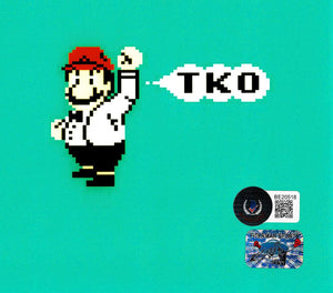 The Mike Tyson Autographed Framed 11x14 Photo Nintendo Punch-Out!! Beckett BAS QR is a rare collector's item featuring the legendary boxer's signature. This officially authenticated piece showcases Tyson in his iconic Nintendo Punch-Out!! pose, capturing a nostalgic moment in gaming history. The high-quality image is professionally framed and measures 11x14 inches, making it a perfect addition to any sports memorabilia collection. With the Beckett BAS QR certification, you can be assured of the authenticity of Tyson's autograph. This Mike Tyson autographed punch out framed print is a must-have for fans of the boxing legend and video game enthusiasts alike.