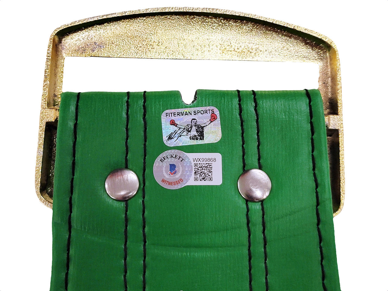 Own an iconic piece of heavyweight boxing history with this Mike Tyson Autographed Green WBC World Championship Belt, authenticated through the Beckett Authentication Services (BAS) Witness Program.