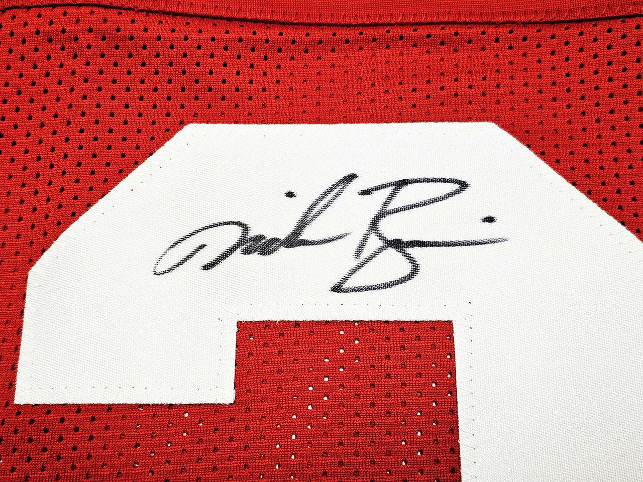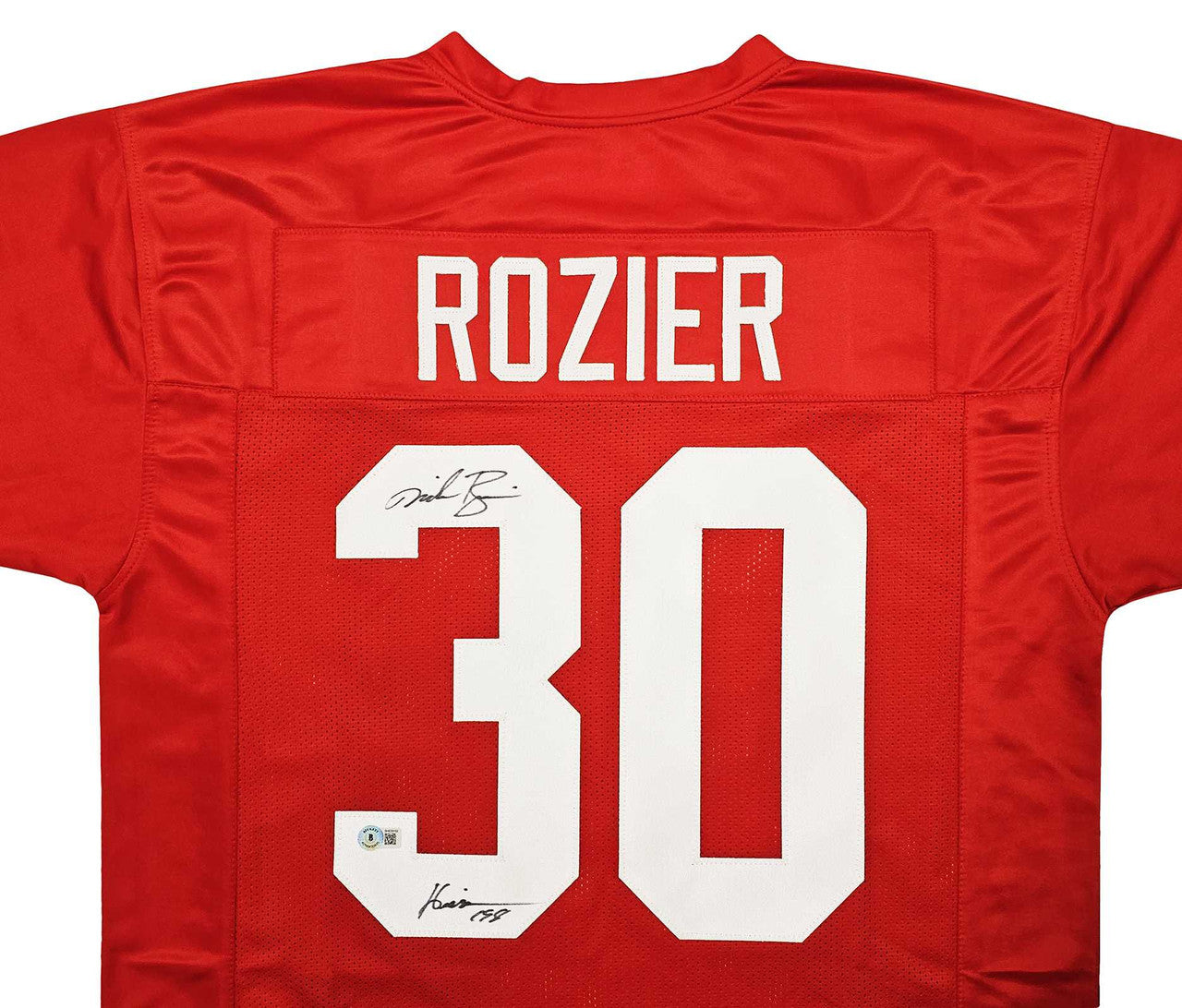 This premium Custom Nebraska Cornhuskers Red Jersey has been hand-signed by Mike Rozier. The autograph and inscription are authenticated by Beckett Authentication Services (BAS) QR Certification. Simply scan the QR code on the hologram to instantly verify authenticity online—no paper COA required.