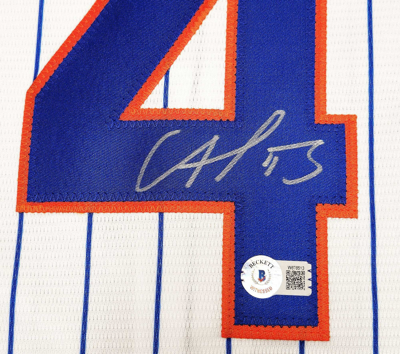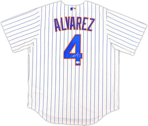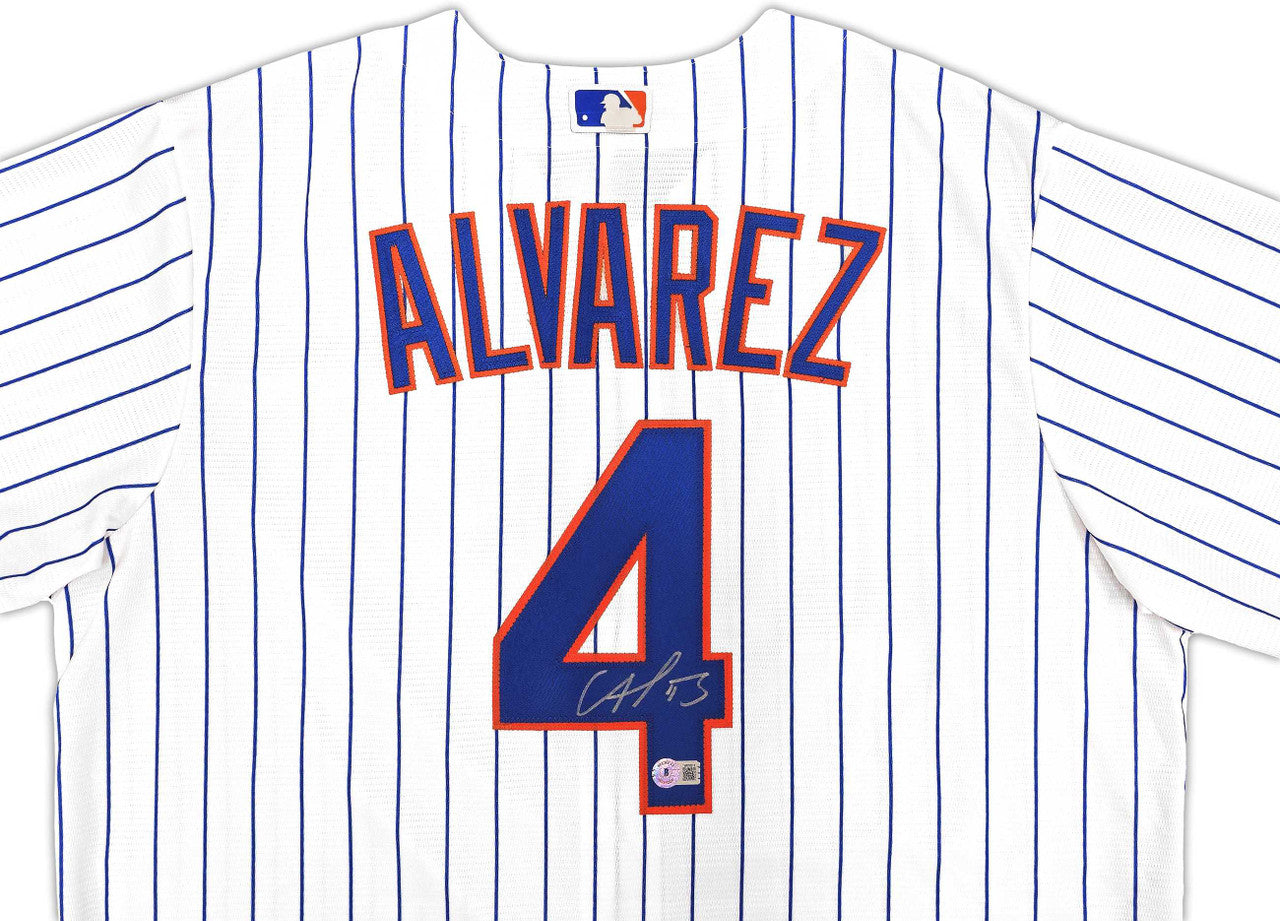 This is a White Nike New York Mets Jersey that has been hand signed by Francisco Alvarez. This jersey is Size L. This item has been witnessed and certified authentic by Beckett Authentication (BAS) and comes with their tamper-proof witness sticker.
