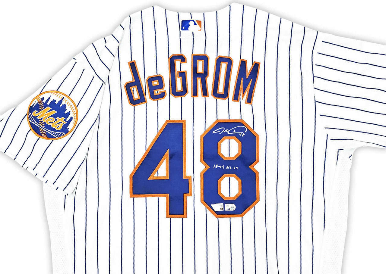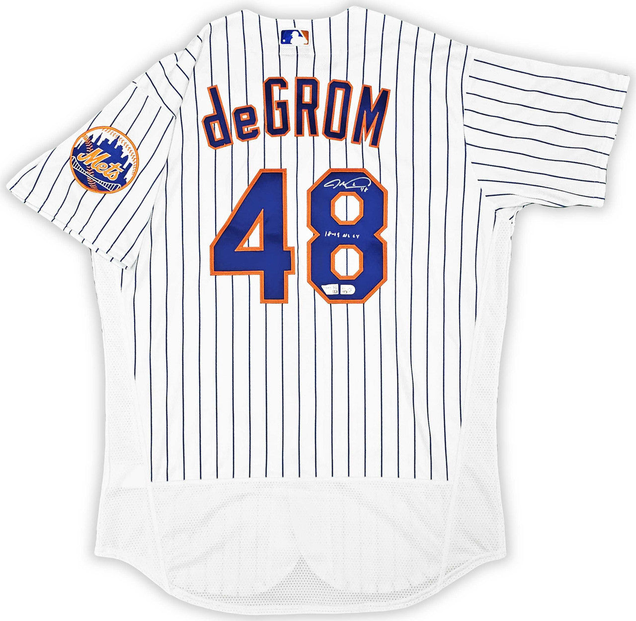 This jersey includes an official Fanatics Authentic tamper-proof hologram, which can be verified online to confirm the authenticity of Jacob deGrom’s signature and inscription.