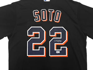New York Mets Juan Soto Autographed Black Nike Jersey Size L Beckett BAS QR