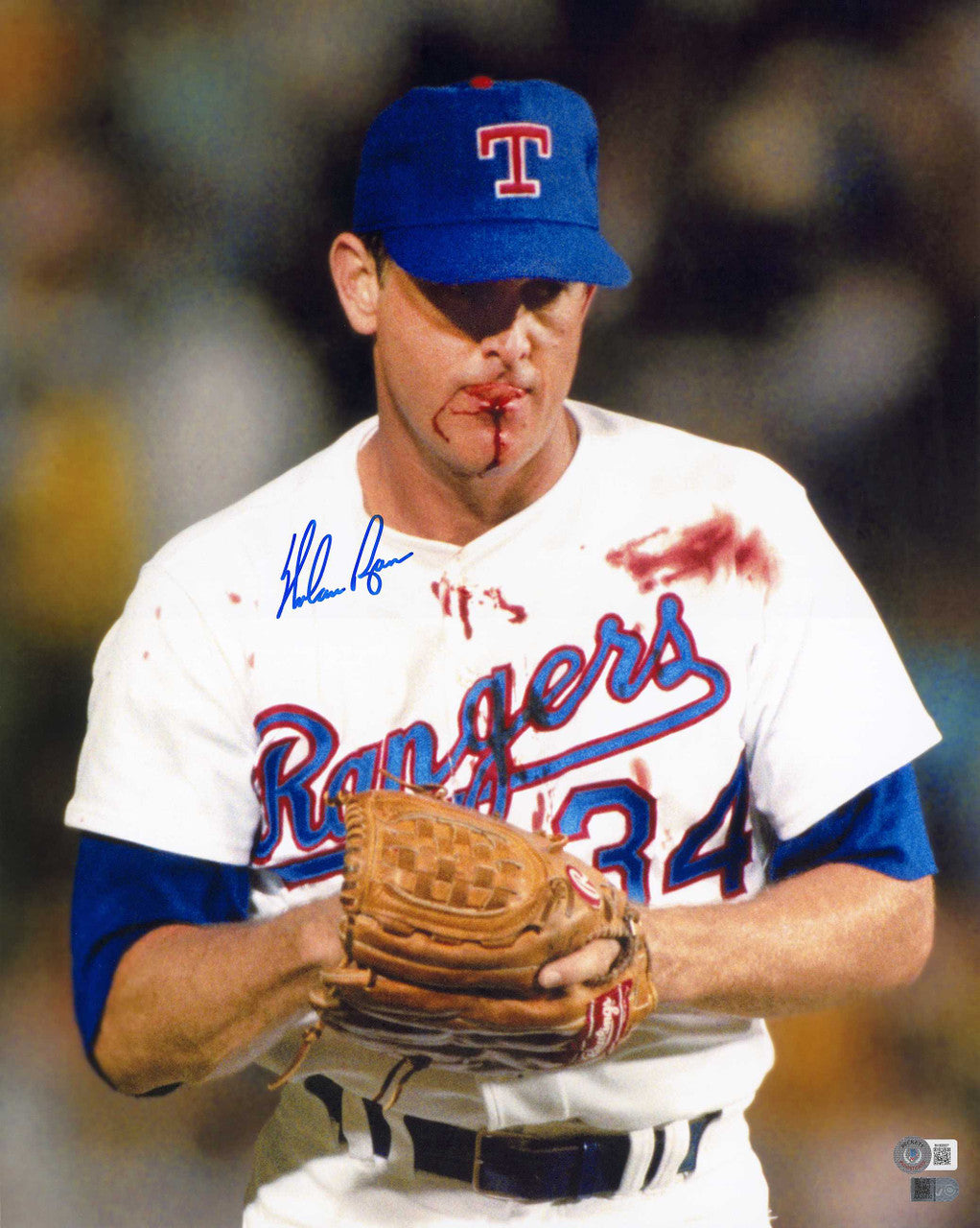 Nolan Ryan Signed Framed 16x20 Texas Rangers “Bloody Lip” Photo – Beckett BAS QR COA