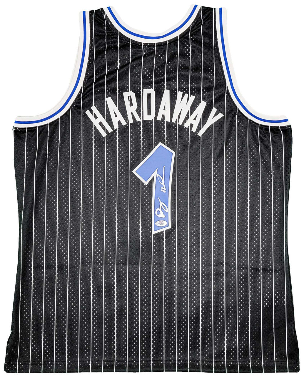 This jersey includes an official PSA/DNA tamper-proof hologram, which can be verified online to confirm the authenticity of Anfernee “Penny” Hardaway’s signature.