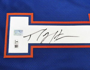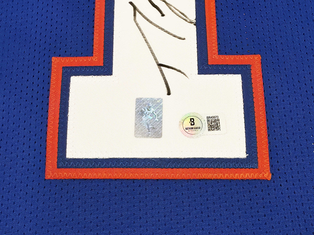 Add elite college football flair to your collection with this Percy Harvin Autographed Custom Florida Gators Blue “#11” Jersey. Hand-signed by the electrifying Gators standout, this jersey features the iconic #11 and bold Florida colors. Verification is easy with Beckett Authentication Services (BAS) QR—scan the tamper-proof hologram to confirm authenticity instantly. A standout display piece for Florida fans and serious NCAA memorabilia collectors.