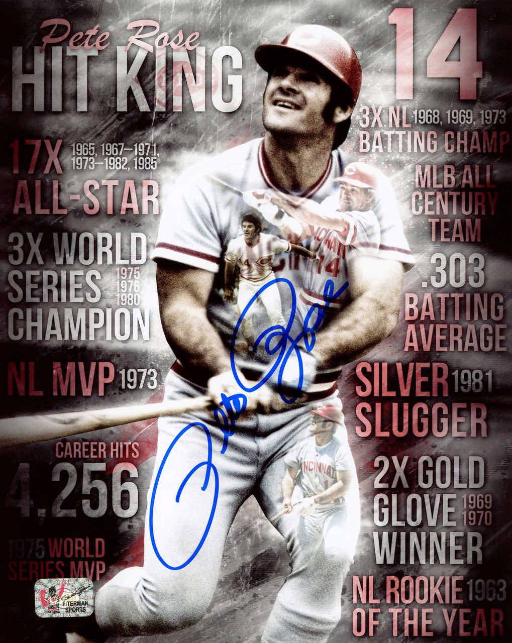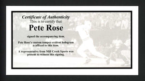 This is an 8x10 Photo that has been hand signed by Pete Rose. This item has the official tamper-proof Pete Rose hologram and matching certificate of authenticity.