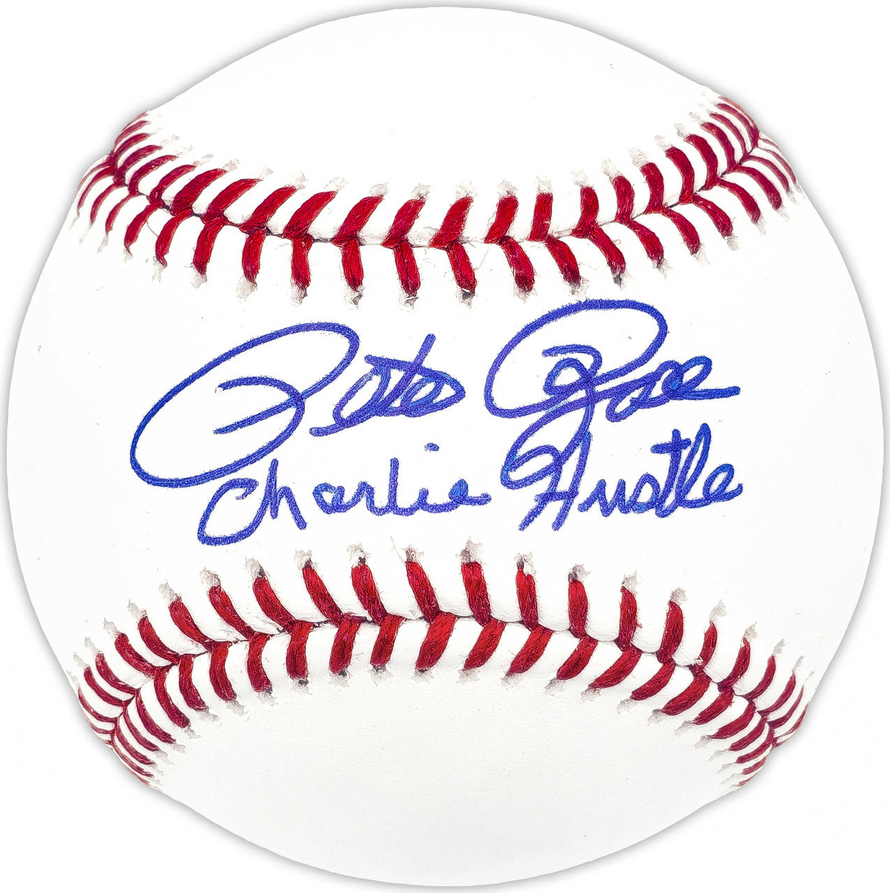 This is an Official MLB Baseball that has been hand signed by Pete Rose. This item was inscribed "Charlie Hustle." This item has the official tamper-proof Pete Rose hologram and matching certificate of authenticity.