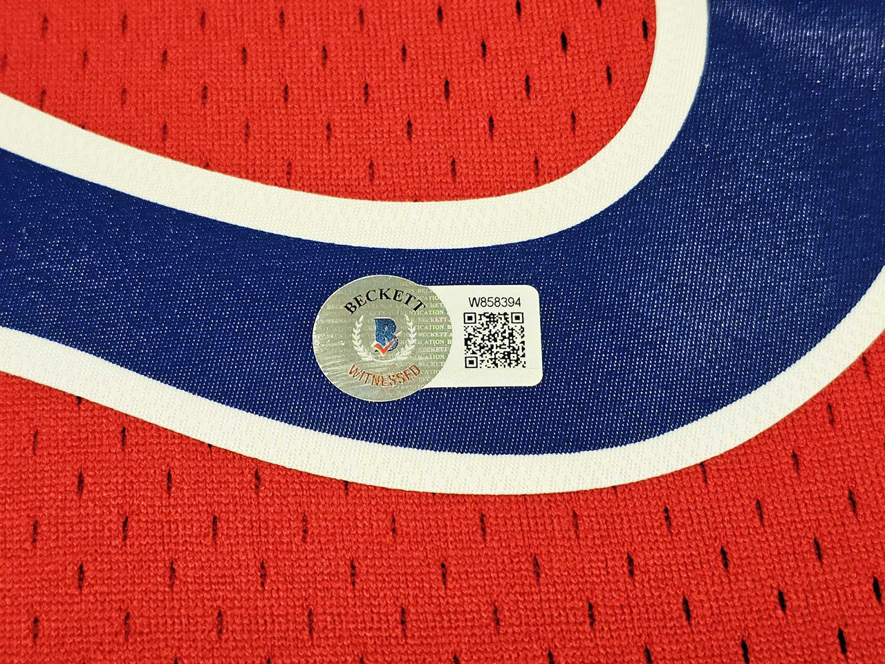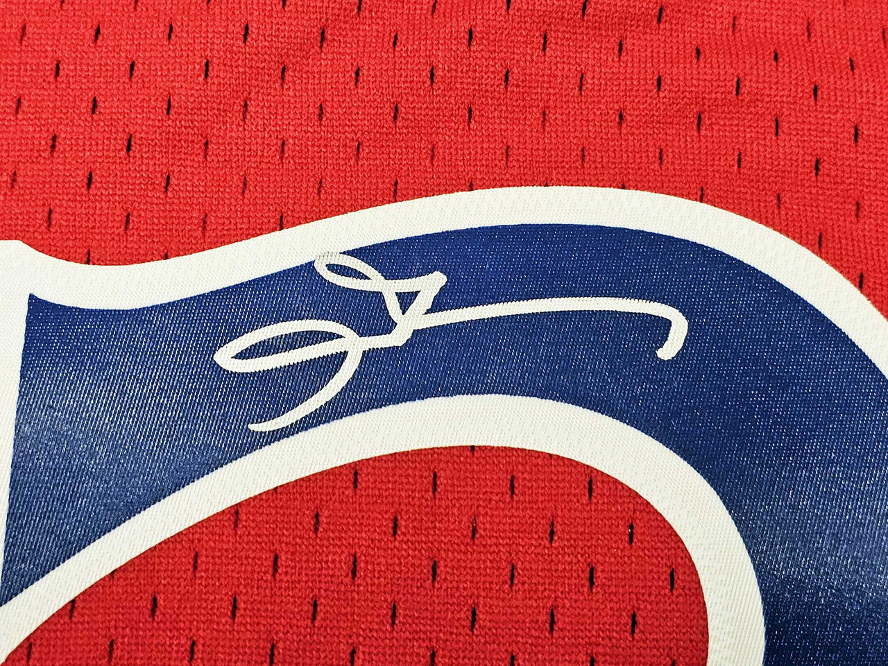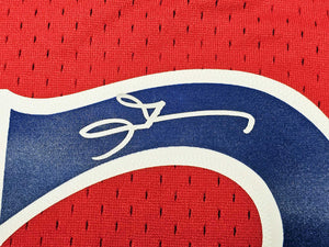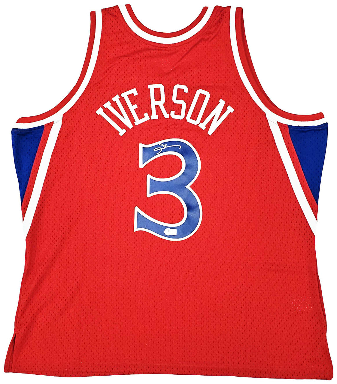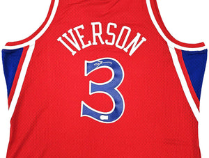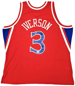 This is a Red Authentic Mitchell & Ness Philadelphia 76ers 1996-97 HWC Swingman Jersey that has been hand signed by Allen Iverson. This jersey is Size XXL. This item has been witnessed and certified authentic by Beckett Authentication (BAS) and comes with their tamper-proof witness sticker.