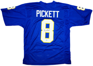 Celebrate the rise of a Pitt Panthers star quarterback with this Kenny Pickett Autographed Custom Blue Jersey. Pickett's unforgettable 2021 season, ACC Championship run, and “fake slide” highlight helped cement his legacy as one of the greatest quarterbacks in Pittsburgh history.