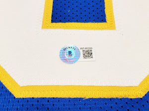 This high-quality Custom Pitt Blue Football Jersey has been hand-signed by Kenny Pickett with a bold, crisp signature. The autograph is authenticated through Beckett Authentication Services (BAS) QR Certification. Simply scan the QR-coded hologram to instantly verify the autograph online— no paper COA is required.
