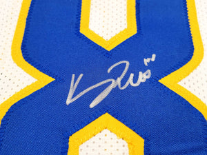 A custom jersey is not produced by any official team or licensed manufacturer. It features stitched letters and numbers but no team logos. Custom jerseys are typically Size XL unless otherwise noted and are meant for memorabilia display. The autograph is 100% genuine and professionally certified.