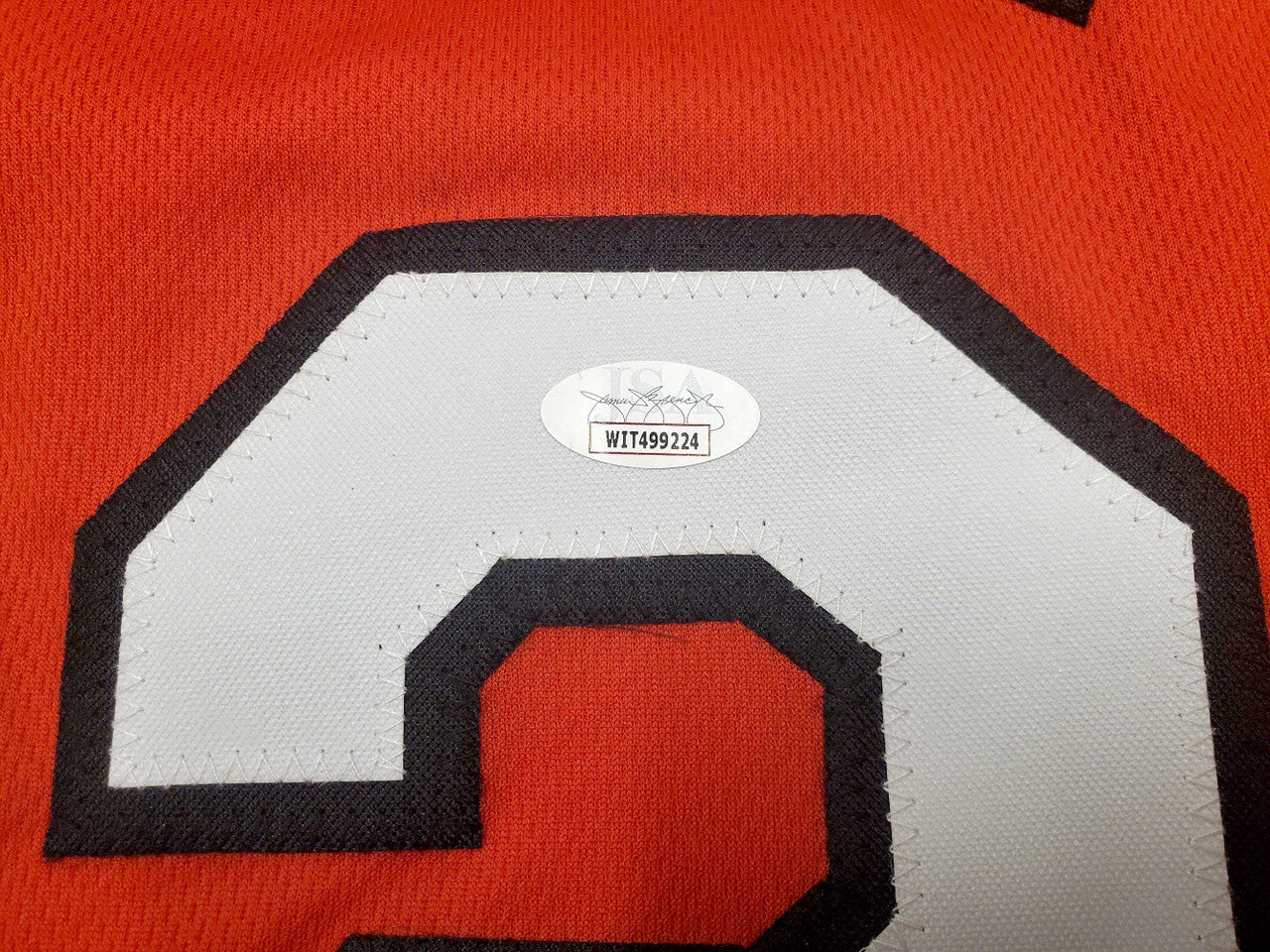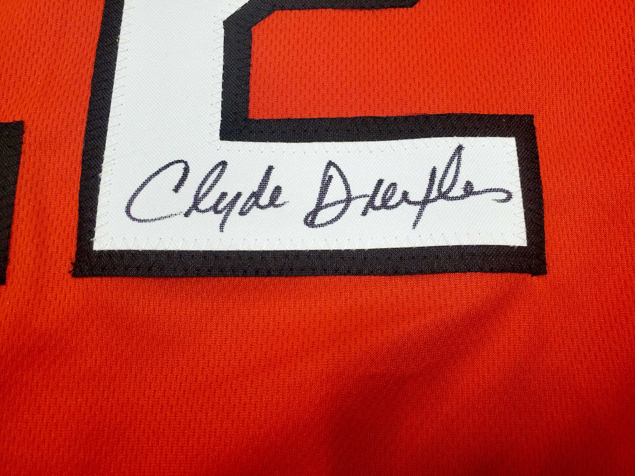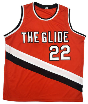This is a Red Jersey that has been hand signed by Clyde Drexler. This is a custom jersey with no name brand. The approximate size is XL. It has nice sewn in name and numbers. This item has been certified authentic by JSA and comes with their tamper-proof sticker and matching certificate of authenticity.