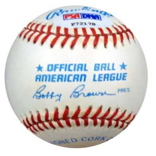 This is an Official American League baseball that has been hand signed by Ray Hayworth. The autograph has been certified authentic by PSA/DNA and comes with their sticker and matching certificate.