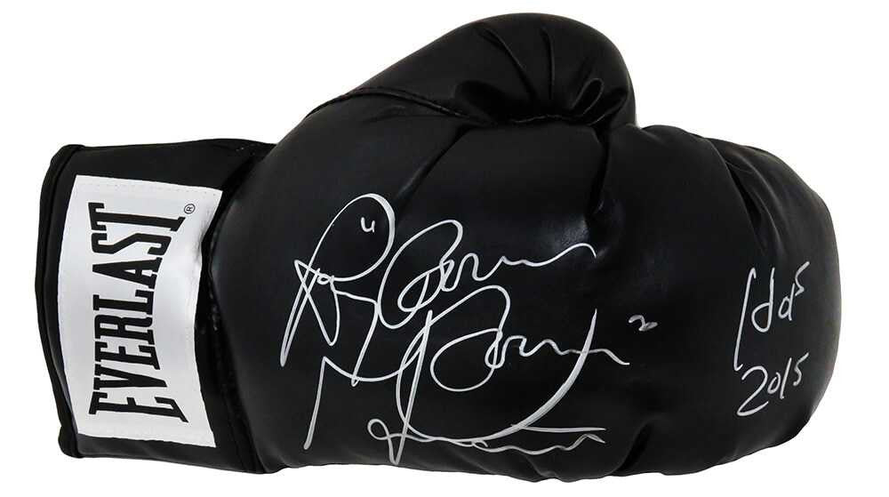 Ray Mancini signed Everlast black boxing glove with 'Boom Boom' and 'HOF 2015' inscriptions. Item comes with a Schwartz Sports Memorabilia tamper-proof numbered hologram and Certificate of Authenticity which can be verified online.