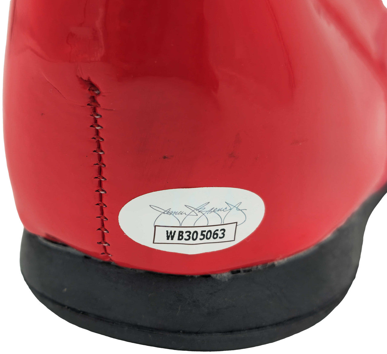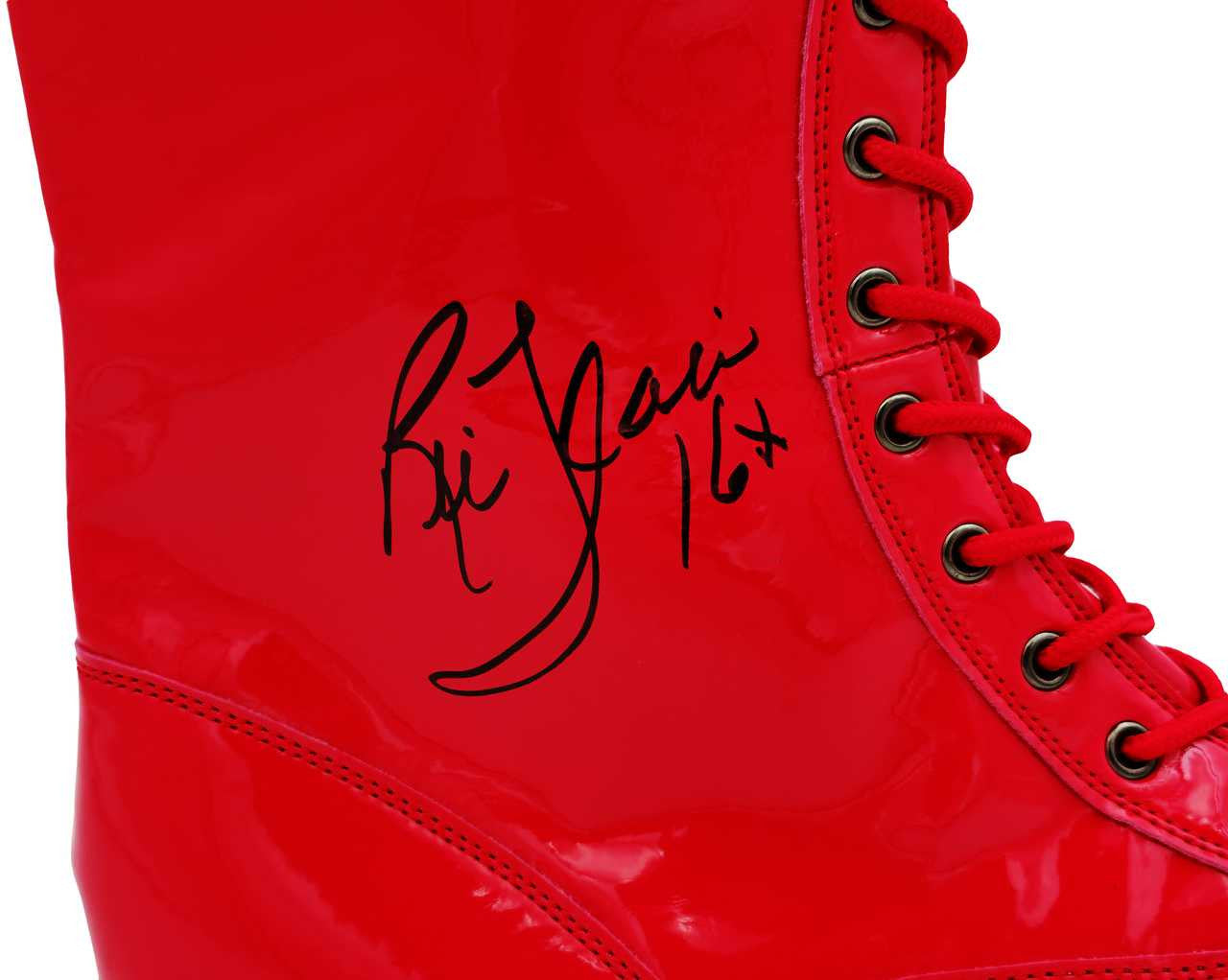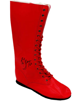 This is a Red Right Footed Boot/Shoe that has been hand signed by Ric Flair. This item was inscribed "16x." This item measures at 4"x11"x16" in size. This item has been certified authentic by JSA and comes with their tamper-proof sticker and matching certificate of authenticity.