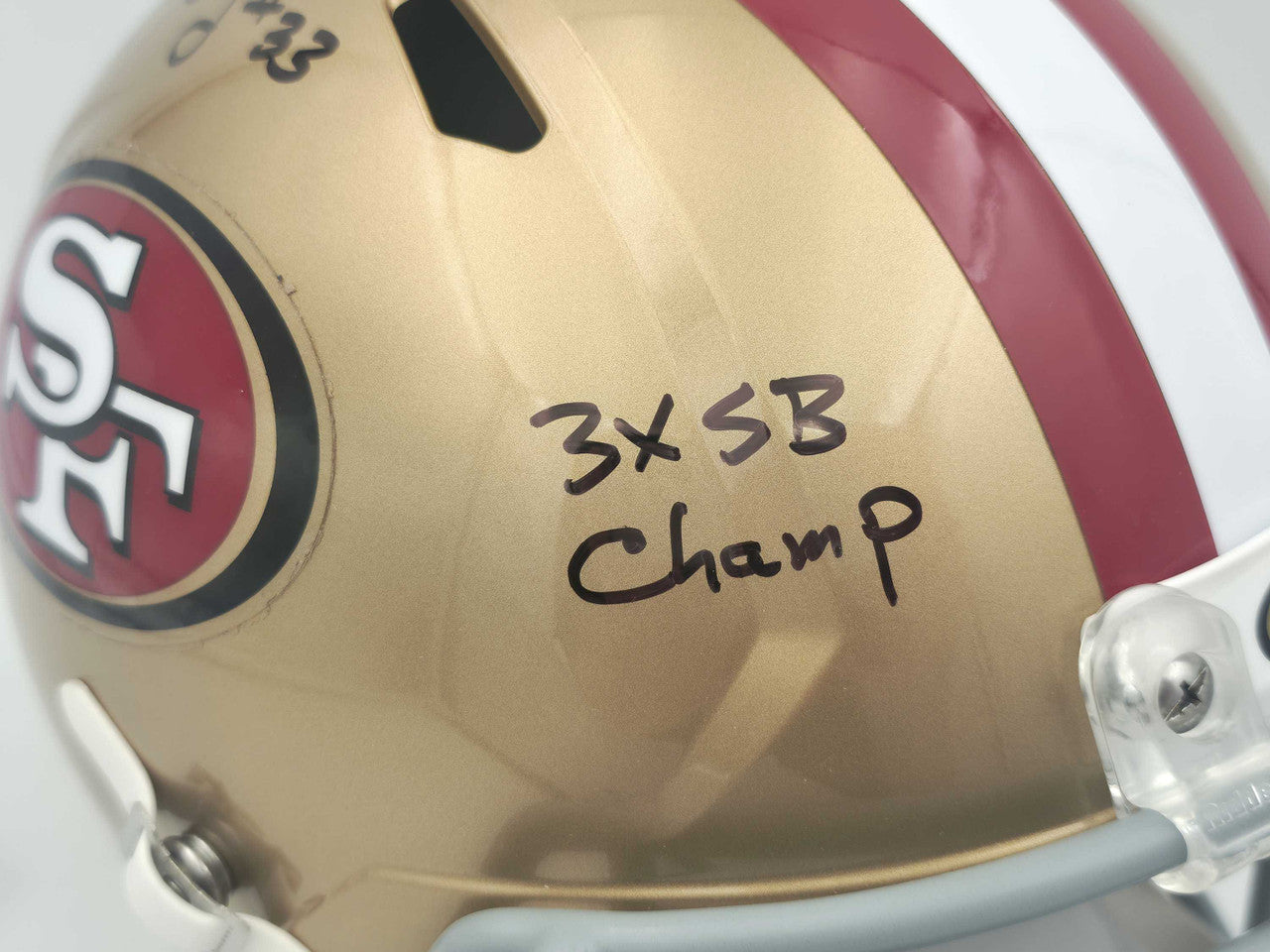 | Helmet Color | Gold with Scarlet Facemask and 49ers Decals |