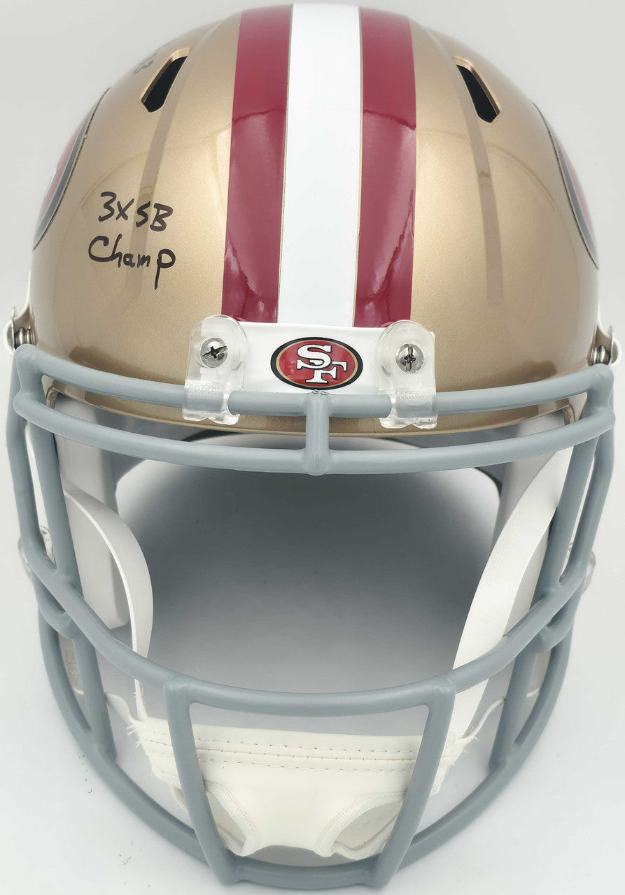 Honor one of the most dynamic running backs in NFL history with this Roger Craig autographed San Francisco 49ers Gold Full-Size Speed Replica Helmet featuring his exclusive “3x SB Champs” inscription. A key part of the 49ers’ 1980s dynasty, Craig was known for his versatility, power, and championship pedigree — making this a must-have for any San Francisco fan or collector.