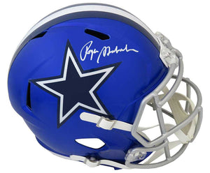 Roger Staubach signed Dallas Cowboys FLASH Riddell full size speed replica helmet. Item comes with a Schwartz Sports Memorabilia tamper-proof numbered hologram and Certificate of Authenticity which can be verified online.