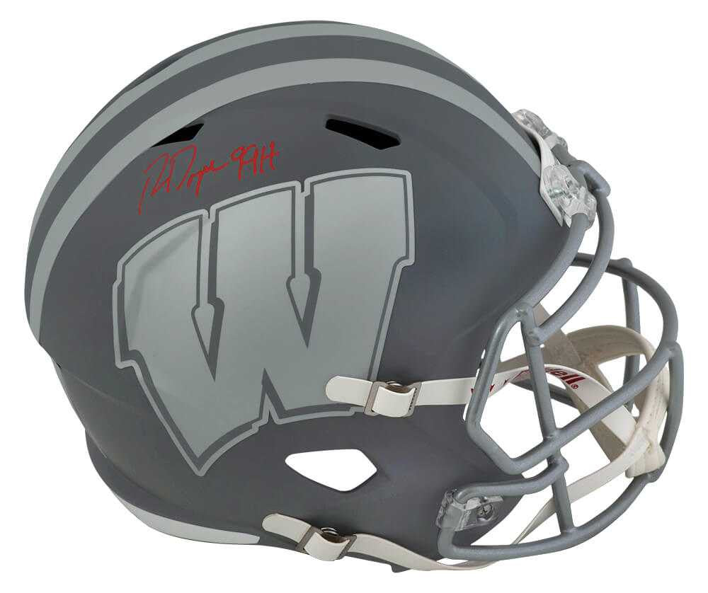 Own a premium full-size football helmet with this Ron Dayne Signed Wisconsin Badgers SLATE Riddell Full Size Speed Replica Helmet w/99H - Schwartz Authenticated. Authenticated by Schwartz Sports for confidence and long-term value.