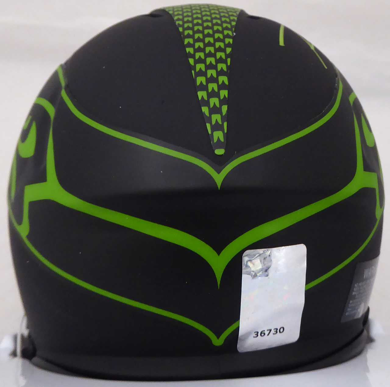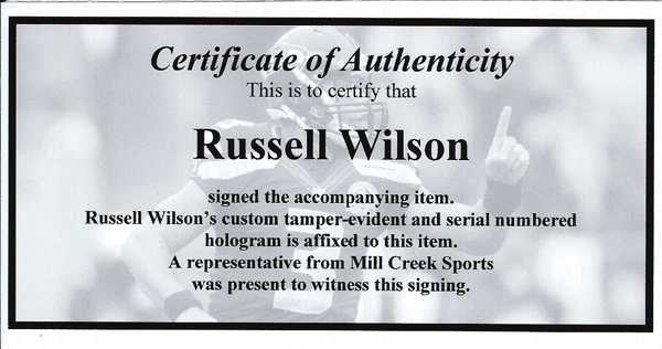 This is a Seattle Seahawks Eclipse Black Speed Mini Helmet that has been hand signed by Russell Wilson. This one is signed in Green This item has the official tamper-proof Russell Wilson serial numbered hologram and matching certificate of authenticity.