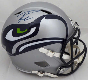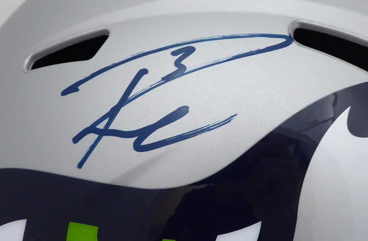 Russell Wilson Autographed Seattle Seahawks Gray AMP Full Size Speed Helmet In Blue RW Holo