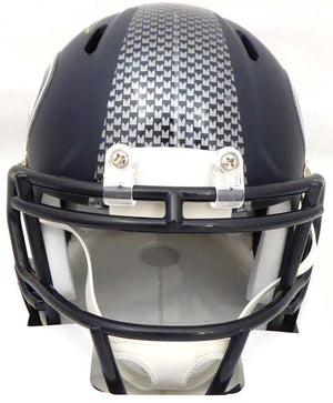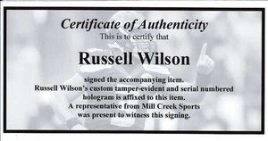 This is a Seattle Seahawks Speed Mini Helmet that has been hand signed by Russell Wilson. This item has the official tamper-proof Russell Wilson serial numbered hologram and matching certificate of authenticity.