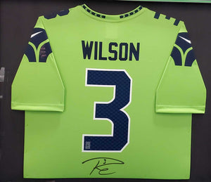 Russell Wilson Signed Seattle Seahawks Action Green Nike Framed Jersey – RW Holo
