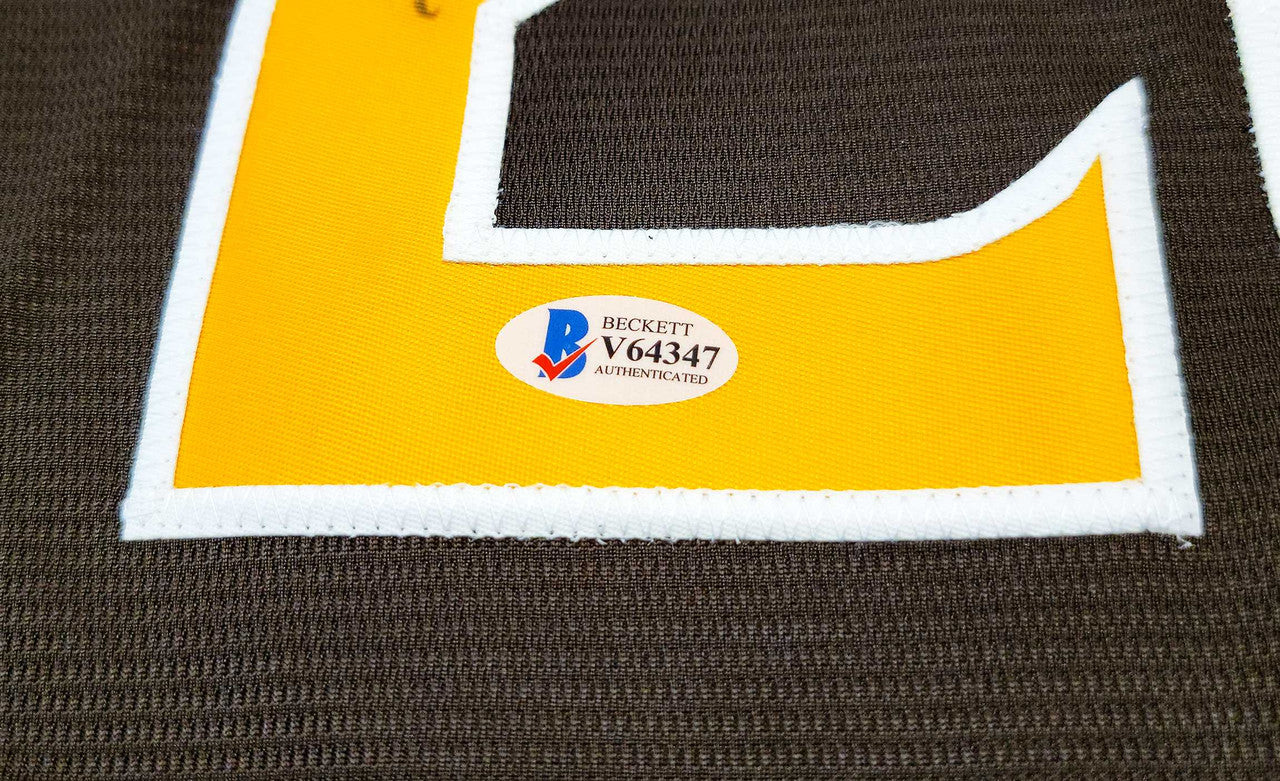 This is a Brown Nike San Diego Padres Jersey that has been hand signed by Fernando Tatis Jr. This jersey is Size XXL. This item was inscribed "23." This item has been certified authentic by Beckett Authentication (BAS) and comes with their tamper-proof sticker and matching certificate of authenticity.