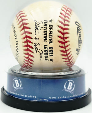 There are two graded Sandy Koufax encapsulated baseballs in this collection. The companion piece carries a BAS Auto Grade of Near Mint/Mint 8 — an exceptionally clean, highly collectible signature. This one carries a Mint 9. On Beckett's ten-point autograph grading scale, the distance between an 8 and a 9 is not a rounding difference. It is the difference between exceptional and near-perfect — between a signature that impresses and one that stops a room. For a player whose autograph supply is as finite and as coveted as Sandy Koufax's, that single grade point represents a meaningful and permanent distinction in collector value. This Official National League Baseball has been permanently encapsulated in Beckett's tamper-proof holder under certification number #19665603, carrying one of the finest authenticated Koufax signatures available in the current market.