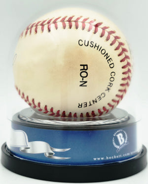 Authentication & Certification This baseball has been certified authentic by Beckett Authentication Services (BAS) with a formal Auto Grade of Mint 9, permanently encapsulated under certification number #19665603, verifiable directly at Beckett's official website. The encapsulated holder is tamper-proof — the baseball and the grade are locked together permanently, and the piece cannot be altered without visibly compromising the case.