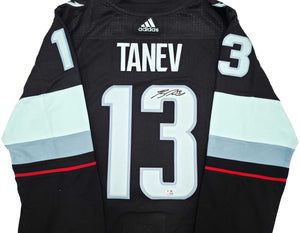 Ideal for framing, display cases, home offices, fan caves, or Kraken-themed collections, this signed Tanev jersey is a premium, must-have collectible.