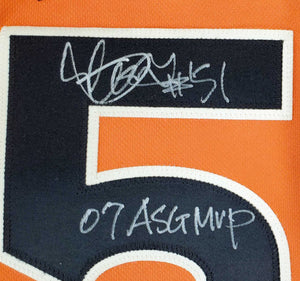 This is an Orange Majestic 2007 All-Star Game Jersey that has been hand signed by Ichiro Suzuki. Ichiro inscribed this item "07 ASG MVP." This jersey is size XXL. This item has the official tamper-proof Ichiro Suzuki hologram and matching certificate of authenticity.