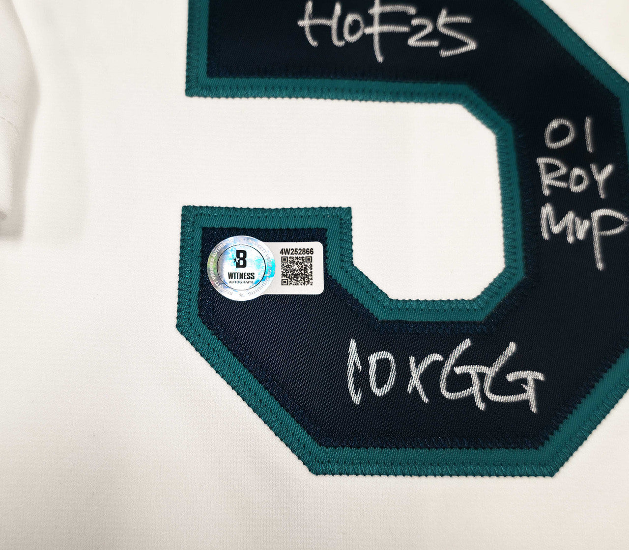 The autograph has remembered two levels of authentication. It includes the official Ichiro Suzuki tamper-proof hologram with matching certificate of authenticity, and the signing was also witnessed in person by a Beckett representative. The jersey includes a Beckett BAS Witness hologram, ensuring lifetime online verification.