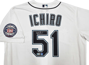 Seattle Mariners Ichiro Suzuki Autographed White Nike Hall of Fame Patch Jersey Size L IS Holo & Beckett BAS Witness