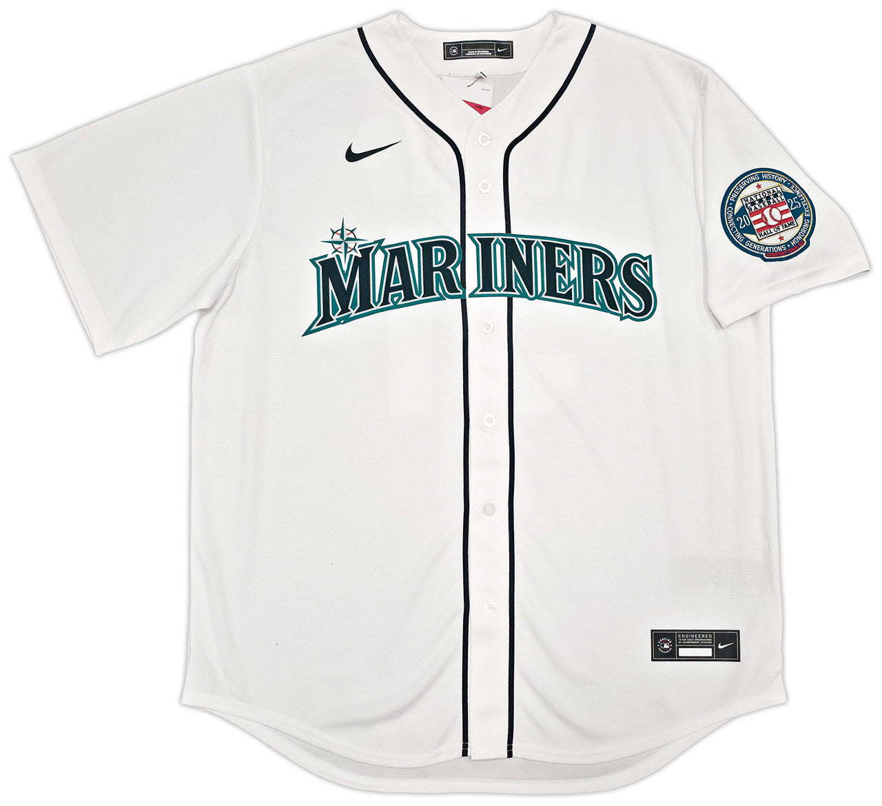 - Seattle Mariners white Nike jersey with Hall of Fame patch