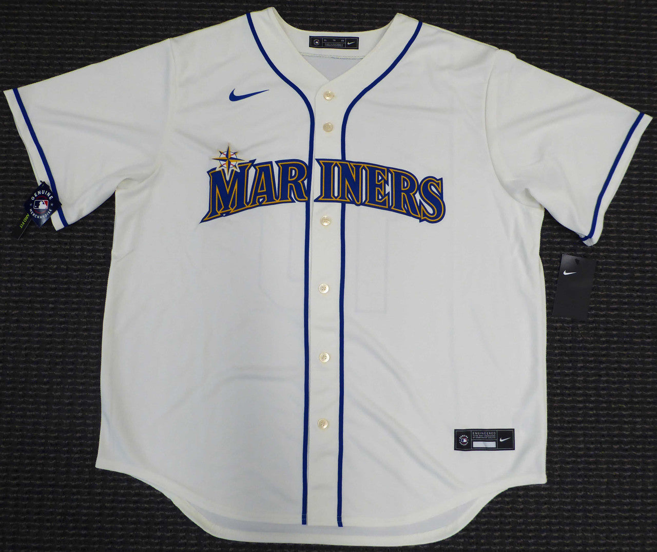 This is a Cream Nike Seattle Mariners Jersey that has been hand signed by Jarred Kelenic. This jersey is Size XL. This item has been certified authentic by Beckett Authentication (BAS) and comes with their tamper-proof QR Code sticker that can be verified on the Beckett-authentication.com.