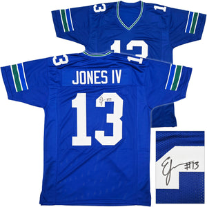 Add a hard-hitting defensive centerpiece to your Seahawks collection with this Ernest Jones IV Autographed Seattle Seahawks Custom Blue Football Jersey, personally signed and authenticated by Mill Creek Sports (MCS).